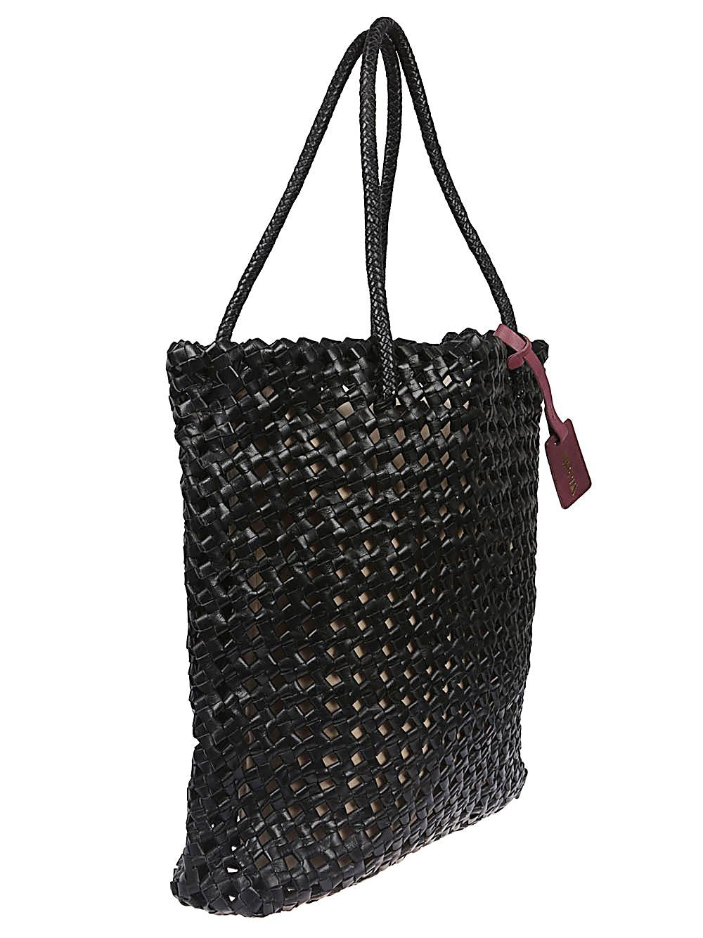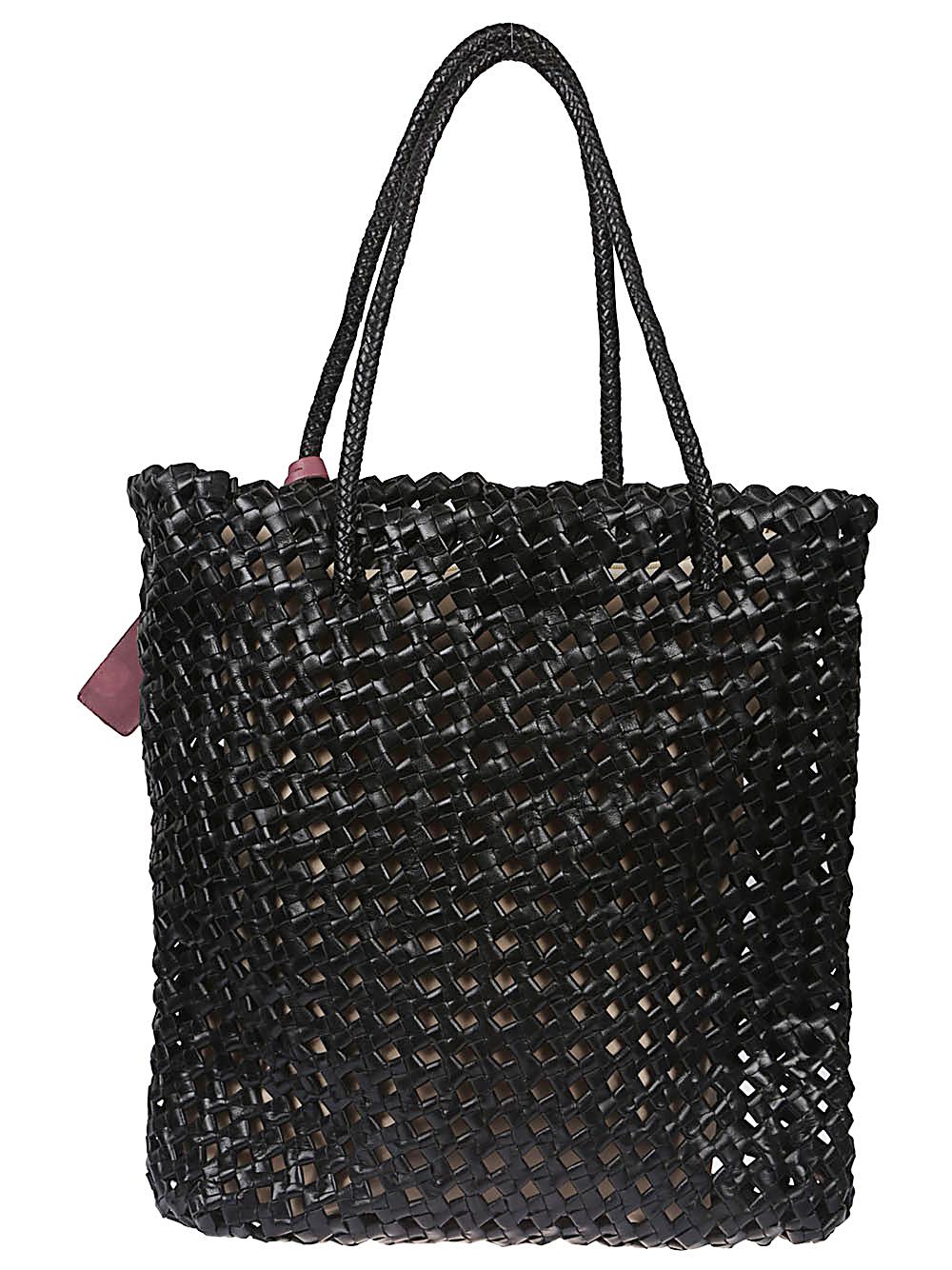 Borsa shopping in pelle con intreccio, nero, tracolla in pelle remuovibile.