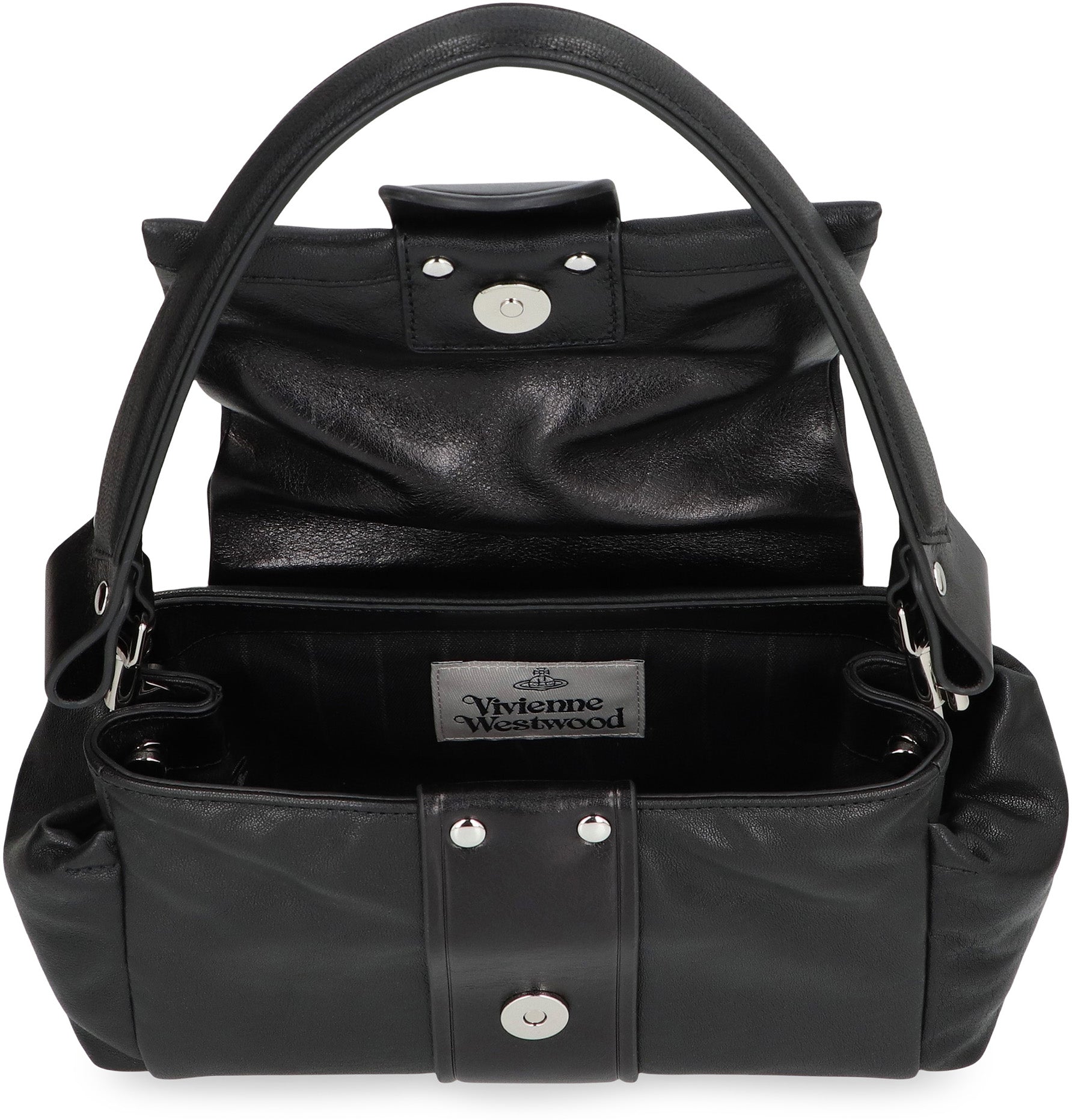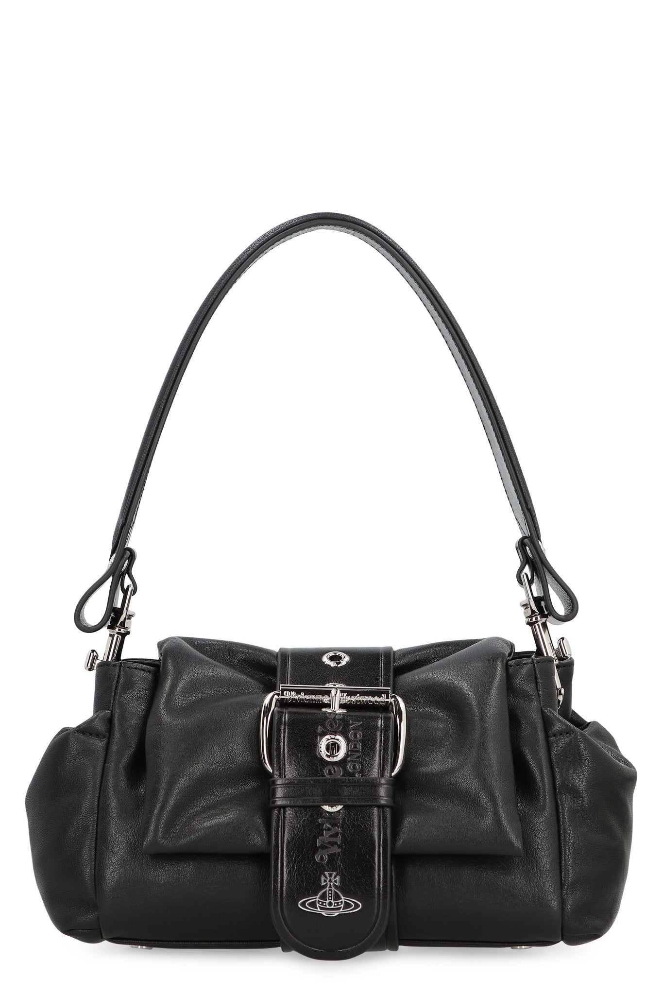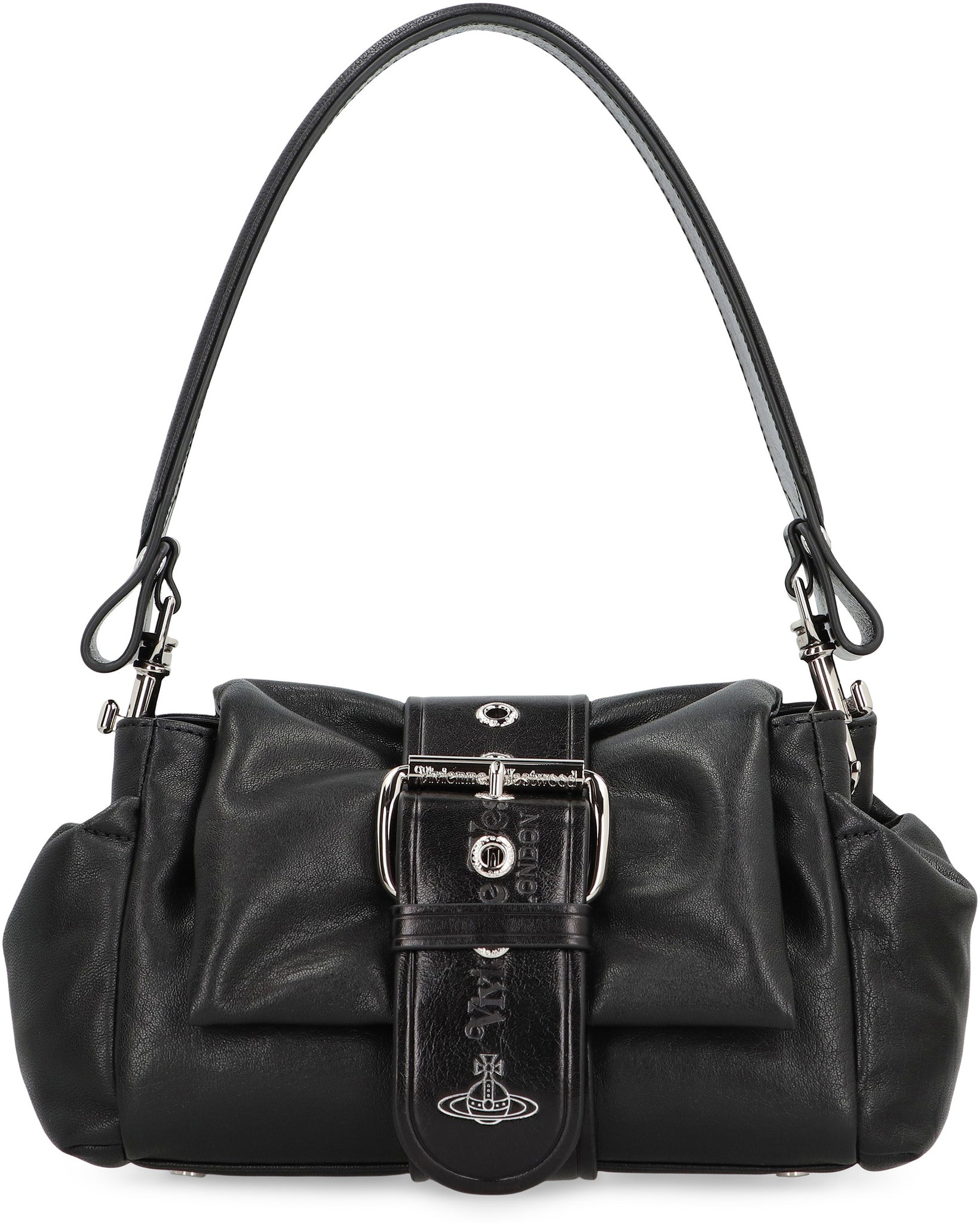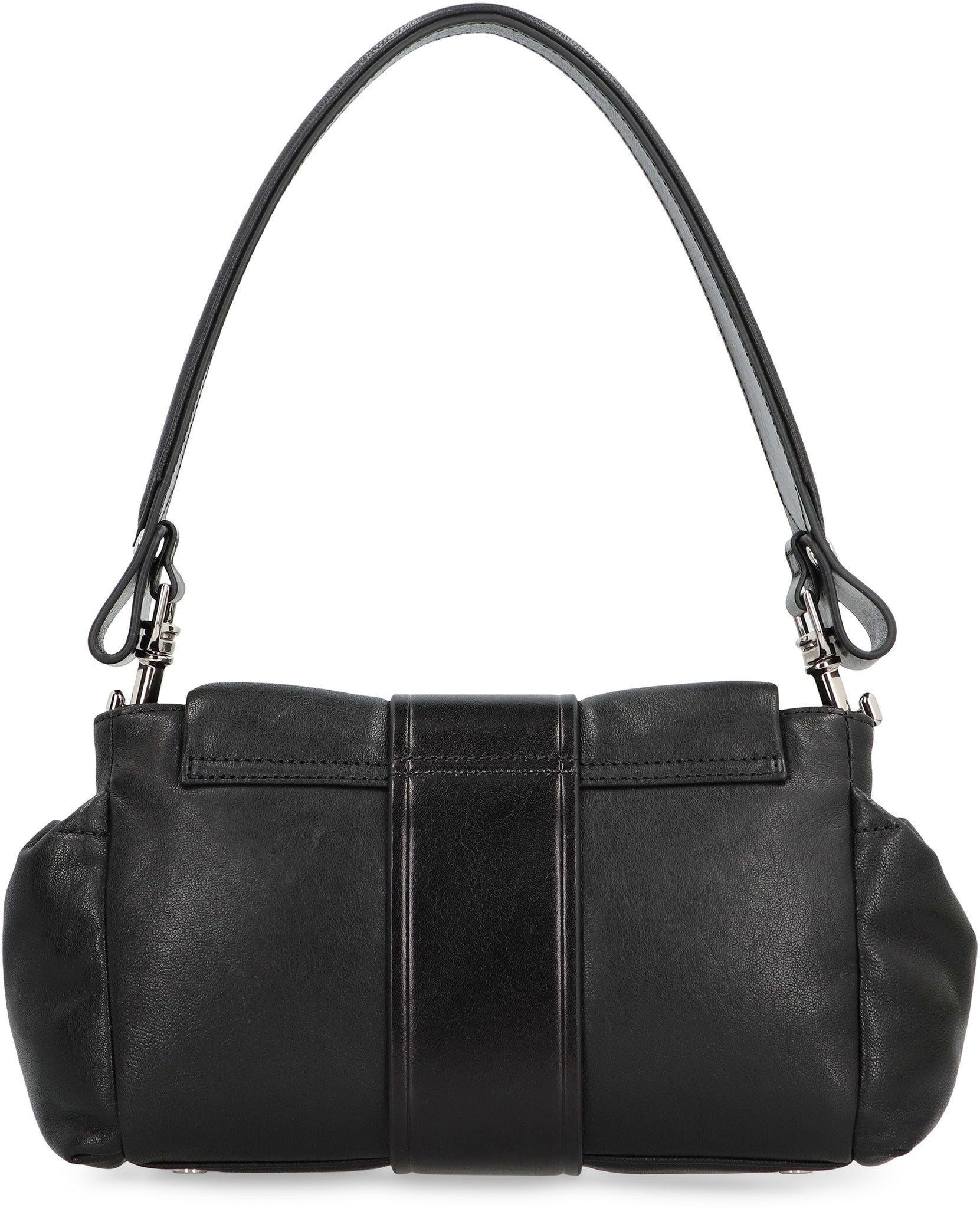 This bag is made of high-quality calfskin and features an elegant black finish. The design is characterized by a structured shape and refined details, including a magnetic closure with buckle, two side pockets, and a removable handle for optimal comfort. The interiors offer sufficient space to store personal items, while the versatile silhouette easily adapts to both casual and formal looks. Perfect for those seeking a timeless style and practicality.