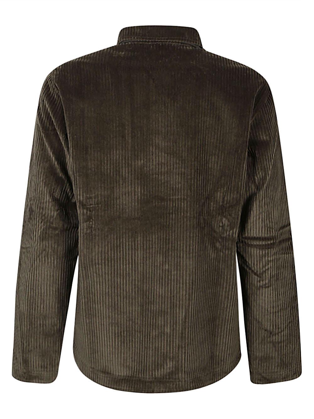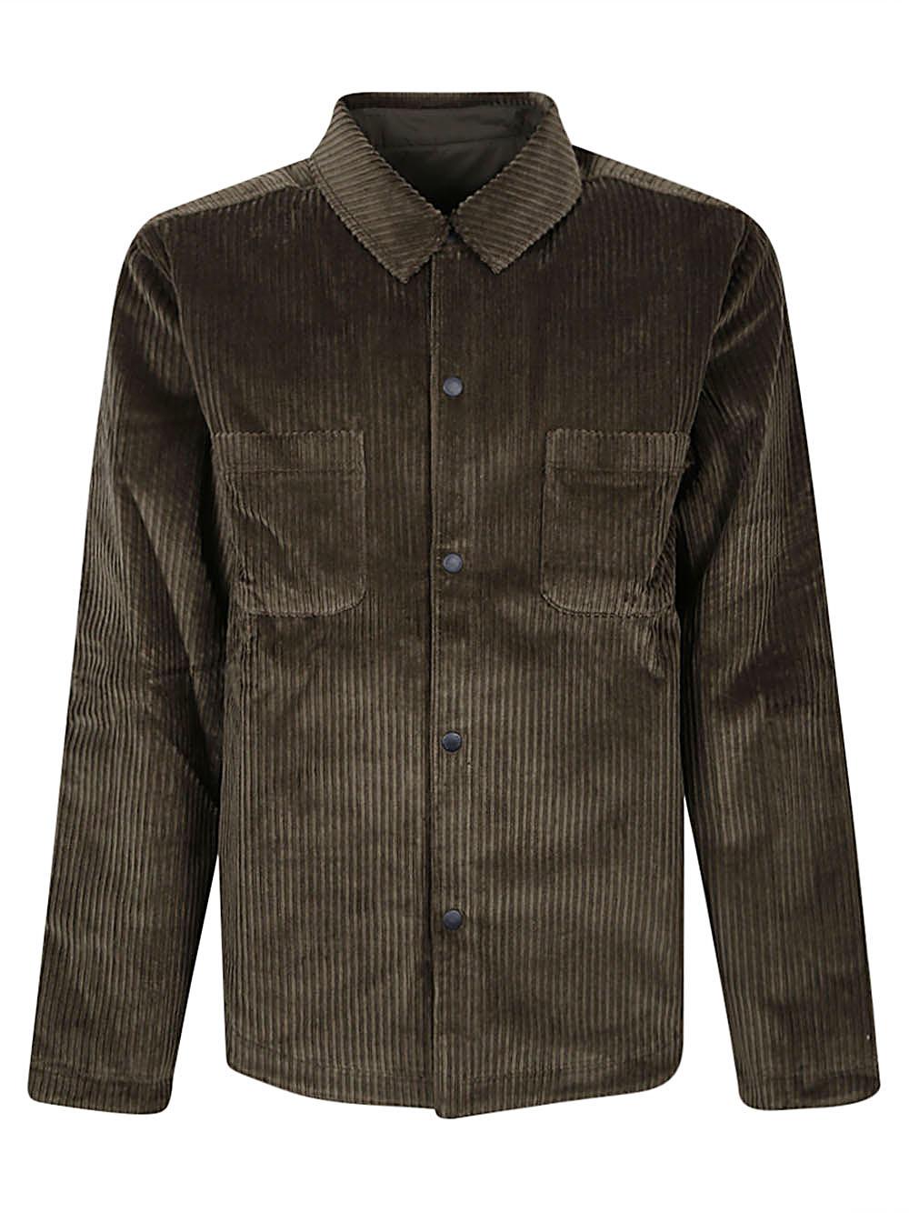 Giacca verde, chiusura a pressione, due tasche in alto, reversibile, a costine.