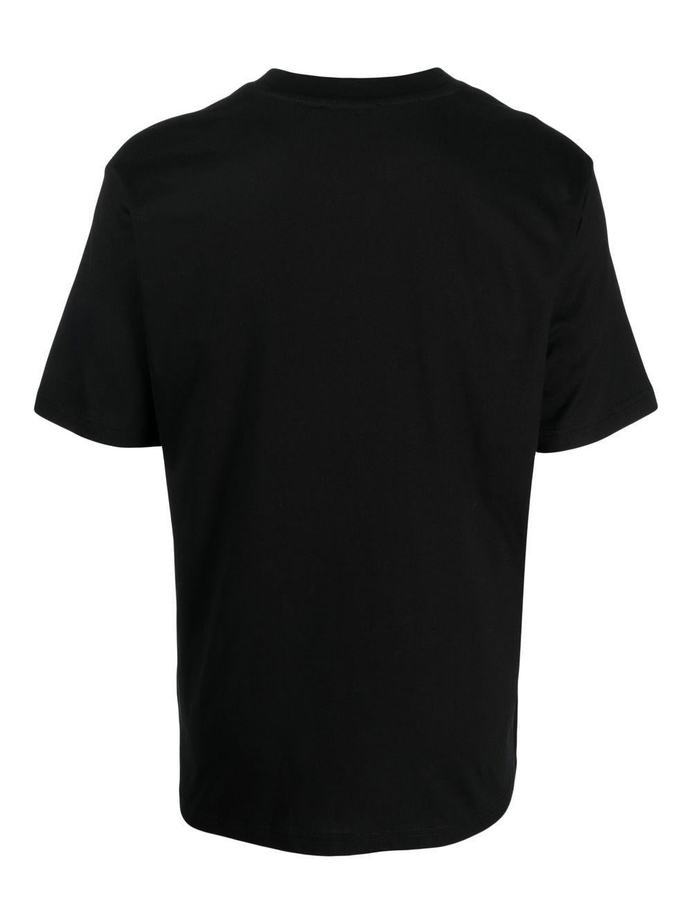 T-shirt in cotone biologico con stampa del logo di 032c caratterizzata da cotone biologico nero, stampa del logo sul davanti, girocollo, maniche corte e orlo dritto.