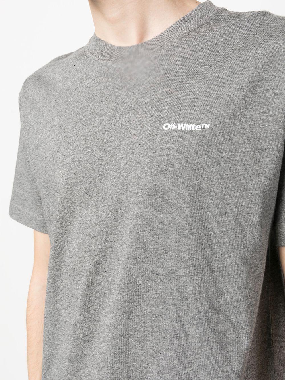 T-shirt in cotone di OFF-WHITE. Modello con stampa Diag-stripe in cotone grigio medio, stampa del logo sul petto, girocollo, maniche corte e orlo dritto.